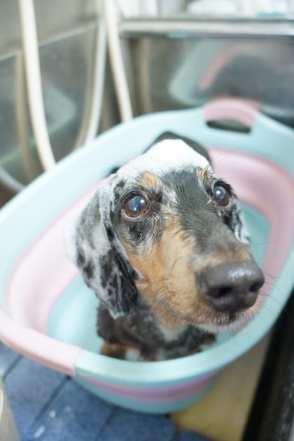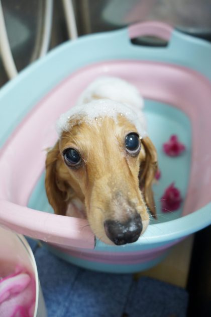 レイラちゃん ローズコースのシャンプー中~🌹💕