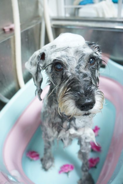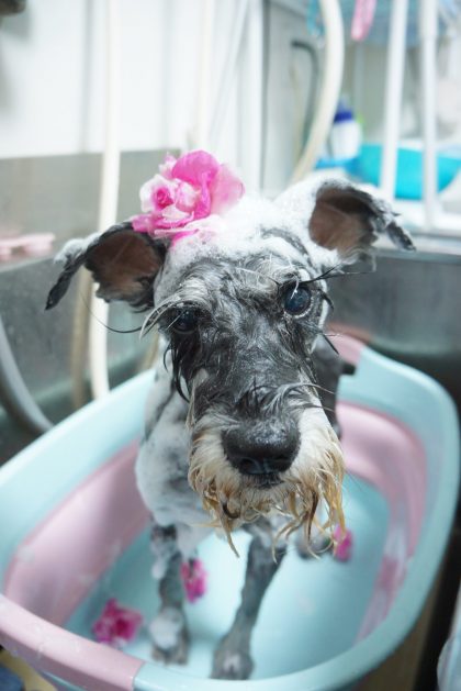 マリーちゃんローズコースのシャンプー中~🌹✨