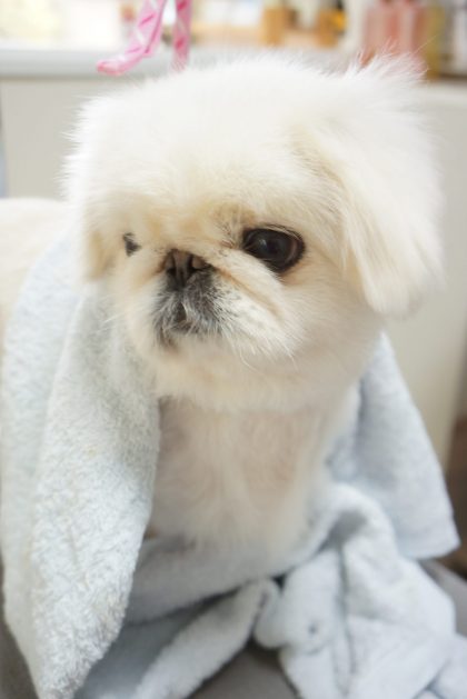 お顔洗うのがちょぴり苦手な雪ちゃんです。