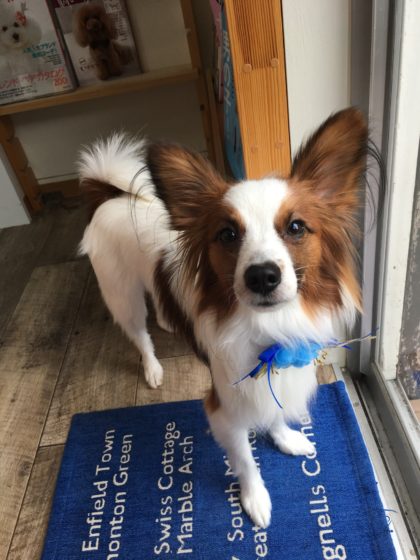 てんくん、お店の中をチラチラ見ながら恐る恐る入ってきてくれました
