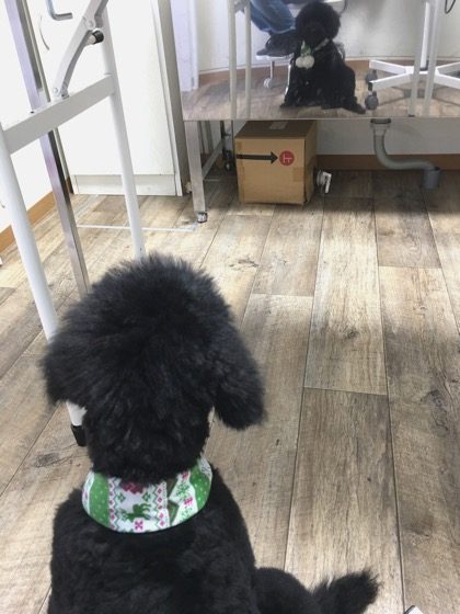 「お前はだれだ?」この後、自分に向かって吠えていました(笑)![]()