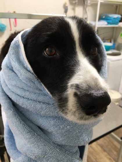 シャンプーしました✨タオルを巻くと、なんとシュールなお顔をするんでしょ(笑)やっぱり嫌ですよね😅