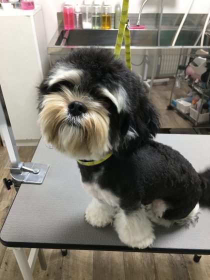 今日は体の毛が毛玉ちゃんがいっぱいなので、かなり短くカットになります![]()